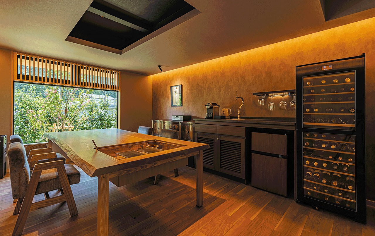 首都圏から車で約90分。南房総・竜島海岸近くの「一客一邸」を掲げる大人向けスイートヴィラ。1階はダイニング、リビング+寝室のリゾートスタイル。バスエリアには半露天風呂、シャワールーム、サウナ、水風呂、外気浴コーナーを設置。2階には『日本書紀』の神話に登場する〝みさご島〟が望めるオーシャンビューのサロンルームがある。食事は専用の囲炉裏ダイニングで。夕食はバトラーが目の前で焼き上げるライブ感あふれる囲炉裏料理と、新鮮魚介と厳選食材を活かした創作料理。ワインセラーに常備した銘柄ワインとのマリアージュはまさに至福のひととき。