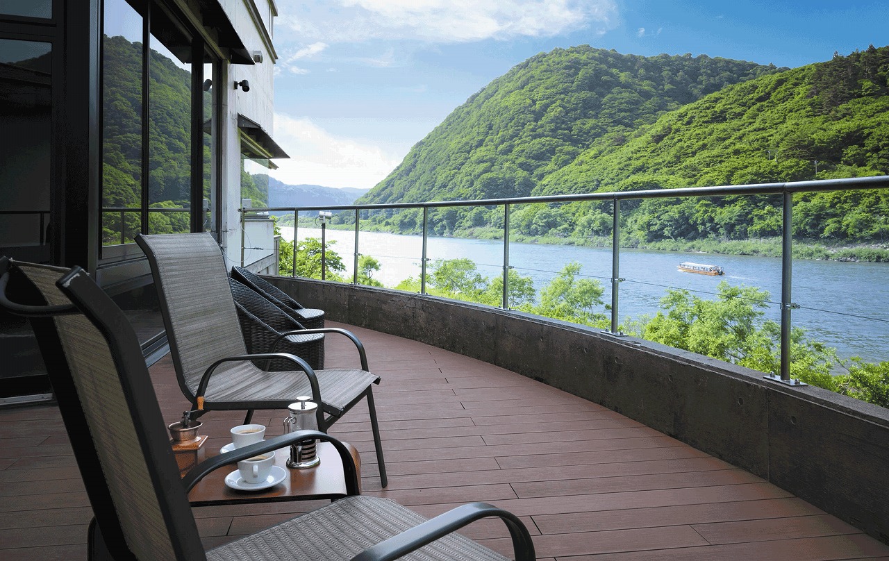 最上川の情景を至る場所で楽しみながらくつろぐ